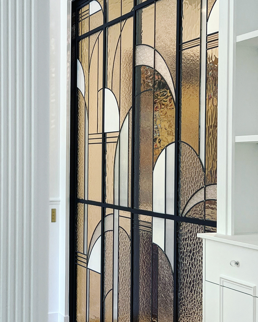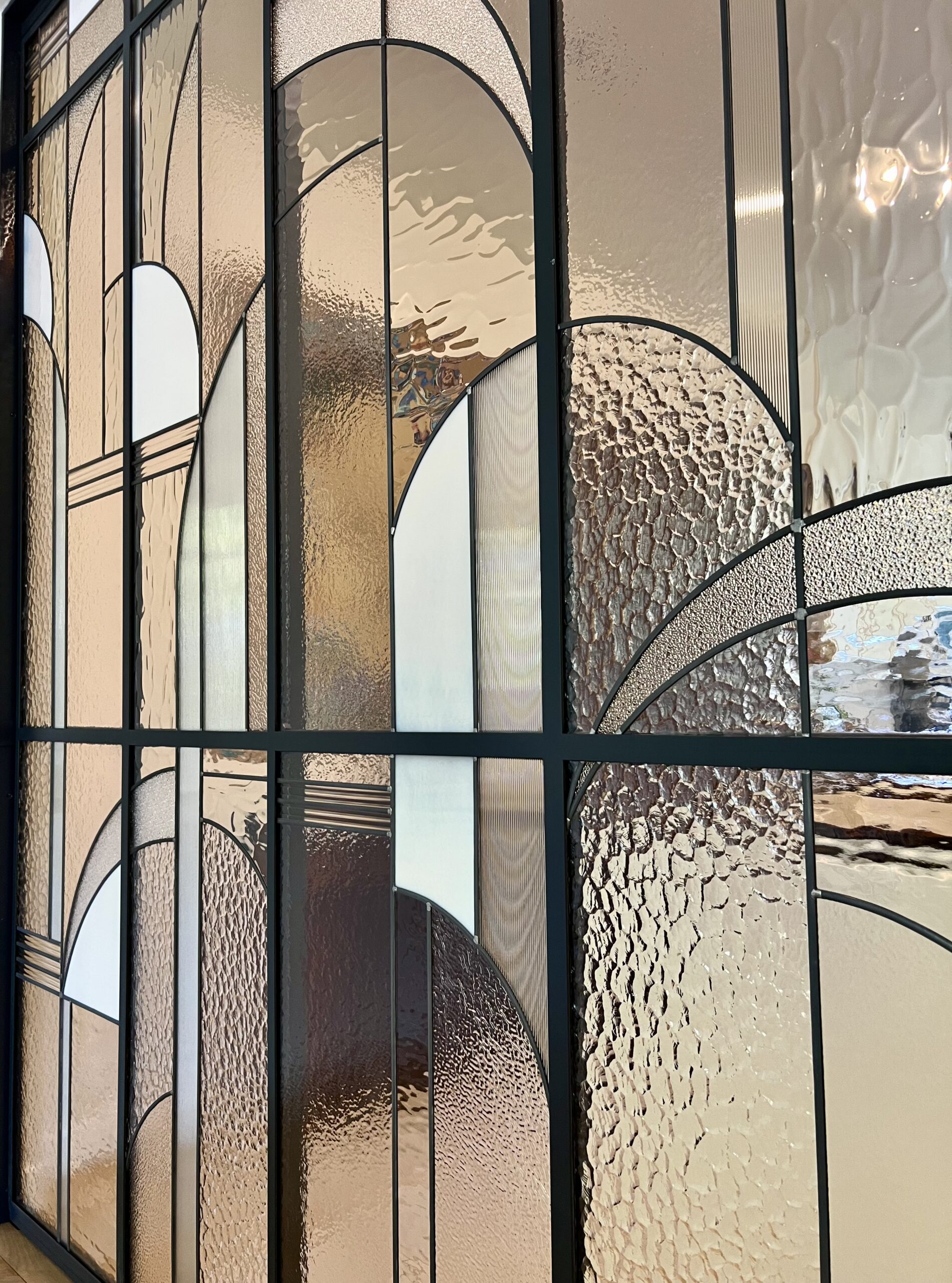 This skylight is inspired by the Neo Art Deco style, with elegant lines and rounded shapes, creating a sophisticated and timeless atmosphere. The textured glass, with warm hues, adds a tactile and luminous dimension, subtly diffusing light in a pleasant way.