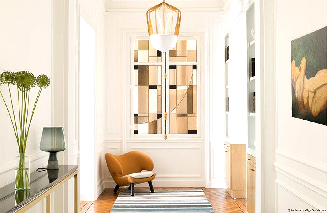 Stained glass enhances light by creating a refined and subtle decor, which continues to captivate with its shifting shades as sunlight changes throughout the day.